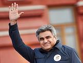 Акция "Своих не бросаем", организованная Общероссийским народным фронтом" (ОНФ), прошла на Манежной площади. Лидер партии Либерально-демократической партии России (ЛДПР) Леонид Слуцкий во время акции.