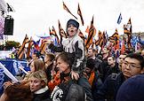 Акция "Своих не бросаем", организованная Общероссийским народным фронтом" (ОНФ), прошла на Манежной площади. Главный редактор канала "Политическая Россия" Руслан Осташко во время акции.