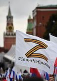 Акция "Своих не бросаем" в поддержку проведения референдумов о присоединении к России ДНР, ЛНР и частей Херсонской и Запорожской областей Украины, организованная Общероссийским народным фронтом" (ОНФ), прошла на Манежной площади. Участники во время акции.