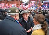 Акция "Своих не бросаем", организованная Общероссийским народным фронтом" (ОНФ), прошла на Манежной площади. Лидер КПРФ, член комитета Государственной думы России по делам Содружества Независимых Государств, евразийской интеграции и связям с соотечественниками Геннадий Зюганов во время акции.