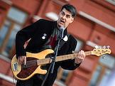 Акция "Своих не бросаем", организованная Общероссийским народным фронтом, прошла на Манежной площади. Бас-гитарист группы "Зверобой" Дмитрий Сосов во время выступления.