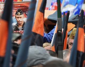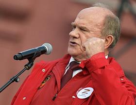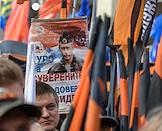 Акция "Своих не бросаем", организованная Общероссийским народным фронтом" (ОНФ), прошла на Манежной площади. Лидер КПРФ, член комитета Государственной думы России по делам Содружества Независимых Государств, евразийской интеграции и связям с соотечественниками Геннадий Зюганов во время акции.