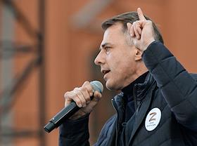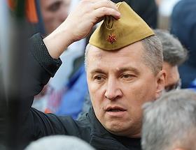 Акция "Своих не бросаем", организованная Общероссийским народным фронтом" (ОНФ), прошла на Манежной площади. Руководитель фракции "Новые люди" в Государственной думе России Алексей Нечаев во время акции.
