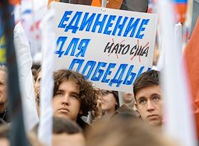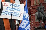 Акция "Своих не бросаем", организованная Общероссийским народным фронтом" (ОНФ), прошла на Манежной площади. Участники во время акции.