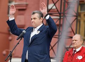Акция "Своих не бросаем", организованная Общероссийским народным фронтом" (ОНФ), прошла на Манежной площади. Председатель партии "Справедливая Россия – За Правду", руководитель фракции "Справедливая Россия" в Государственной Думе России Сергей Миронов во время акции.