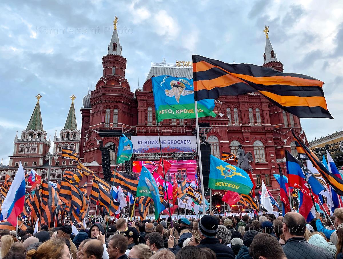 Акция "Своих не бросаем", организованная Общероссийским народным фронтом, на Манежной площади. Жанровая фотография.