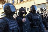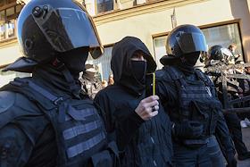 Несанкционированная акция протеста против частичной мобилизации на Сенной площади. Сотрудники ОМОН во время задержания участников акции.