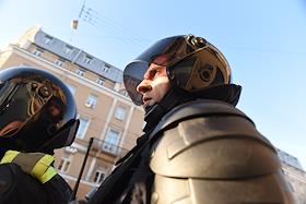 Несанкционированная акция протеста против частичной мобилизации на Сенной площади. Сотрудники ОМОН на месте проведения акции.