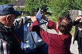 Проведение референдумов о вхождении в состав России Донецкой народной республики (ДНР), Луганской народной республики (ЛНР) и освобожденных территорий. Жанровая фотография. Пожилые люди во дворе дома.