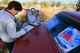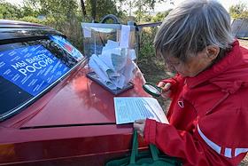 Проведение референдумов о вхождении в состав России Донецкой народной республики (ДНР), Луганской народной республики (ЛНР) и освобожденных территорий. Избиратель во время голосования на выездном избирательном участке.