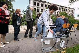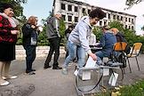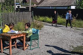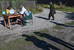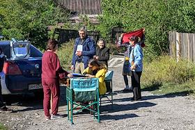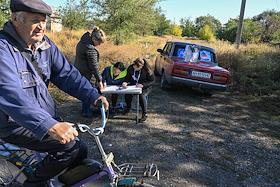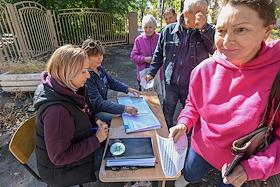 Проведение референдумов о вхождении в состав России Донецкой народной республики (ДНР), Луганской народной республики (ЛНР) и освобожденных территорий. Избиратели во время голосования на выездном избирательном участке.