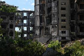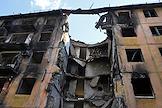 Проведение референдумов о вхождении в состав России Донецкой народной республики (ДНР), Луганской народной республики (ЛНР) и освобожденных территорий. Жанровая фотография. Виды Донецкой области. Разрушенный после обстрелов жилой дом.
