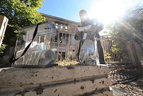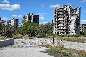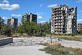 Проведение референдумов о вхождении в состав России Донецкой народной республики (ДНР), Луганской народной республики (ЛНР) и освобожденных территорий. Жанровая фотография. Виды Донецкой области. Разрушенные после обстрелов жилые дома.