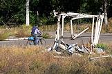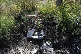 Проведение референдумов о вхождении в состав России Донецкой народной республики (ДНР), Луганской народной республики (ЛНР) и освобожденных территорий. Жанровая фотография. Деревянный крест на месте стихийного захоронения.