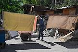 Проведение референдумов о вхождении в состав России Донецкой народной республики (ДНР), Луганской народной республики (ЛНР) и освобожденных территорий. Жанровая фотография. Мужчина во дворе дома.