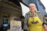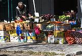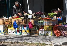 Проведение референдумов о вхождении в состав России Донецкой народной республики (ДНР), Луганской народной республики (ЛНР) и освобожденных территорий. Жанровая фотография. Мужчина торгует овощами на стихийном уличном рынке.