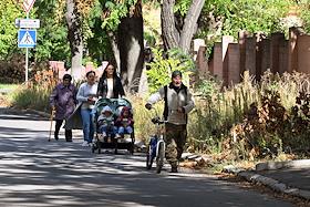 Проведение референдумов о вхождении в состав России Донецкой народной республики (ДНР), Луганской народной республики (ЛНР) и освобожденных территорий. Жанровая фотография. Прохожие на улице.