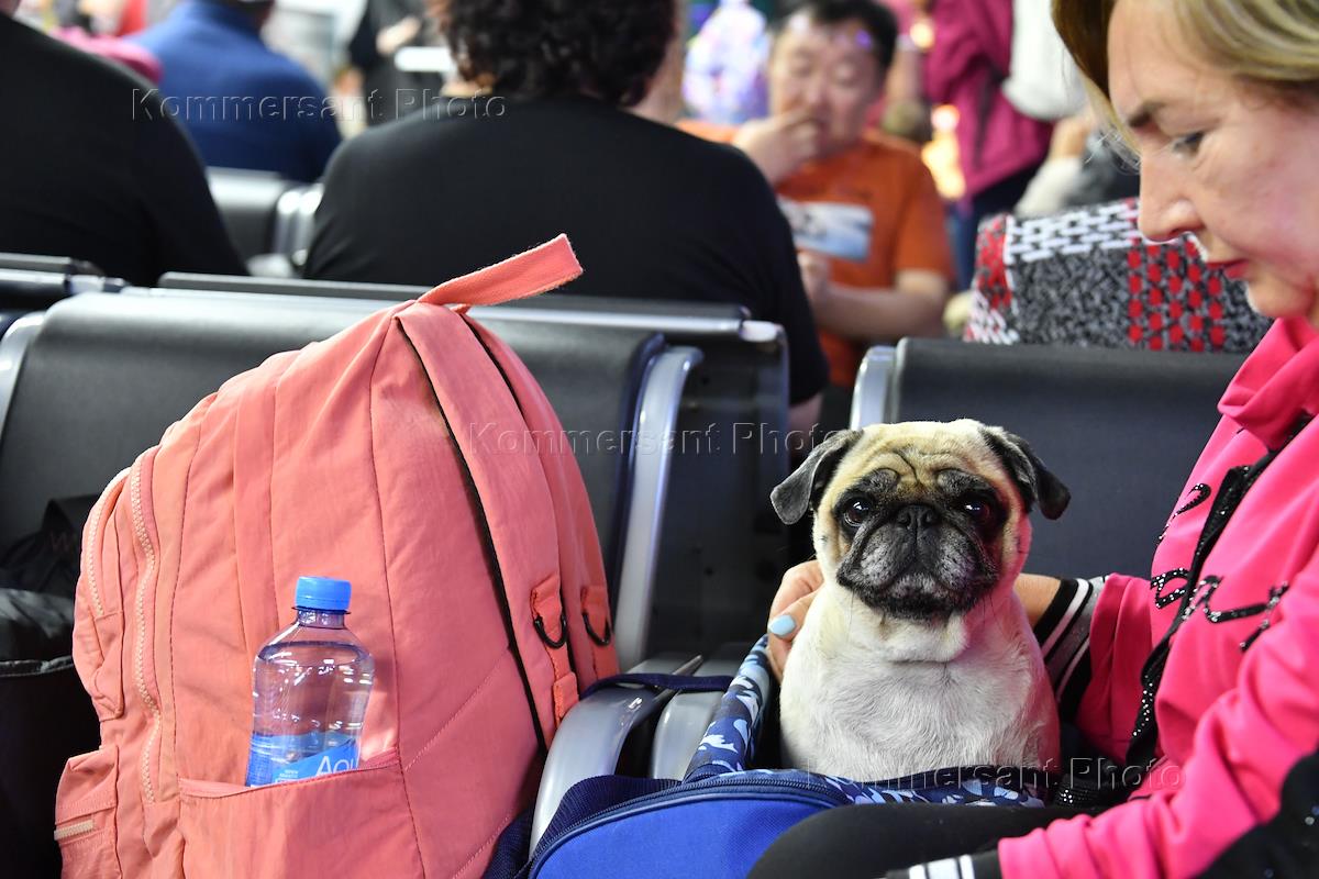 Аэропорт Сочи. Жанровая фотография. Пассажирка с собачкой в зале ожидания аэропорта.