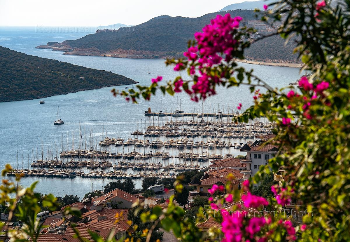 Views of the city of Kas. Genre photography. Berth for boats and yachts.