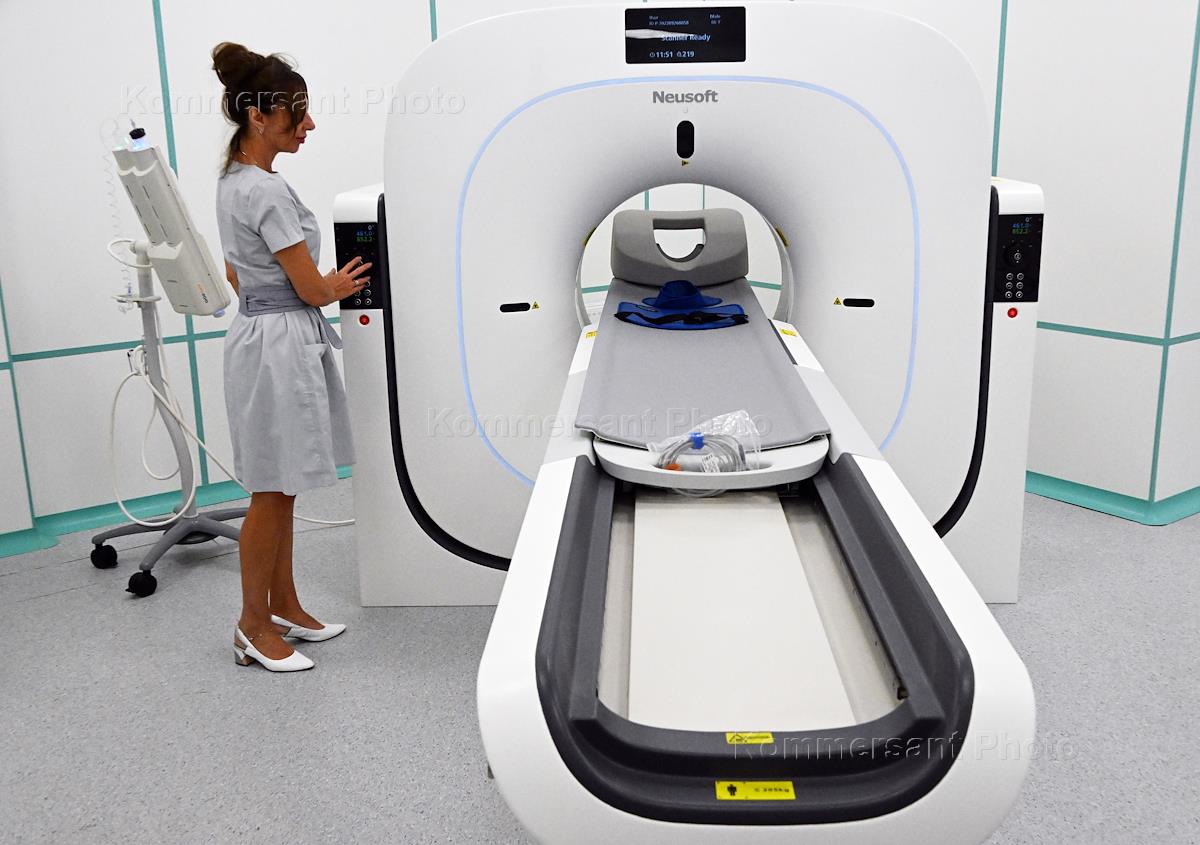 Церемония открытия нового многофункционального медицинского центра в Октябрьском районе Мариуполя. Жанровая фотография. Кабинет Магнитно-резонансной томографии (МРТ).