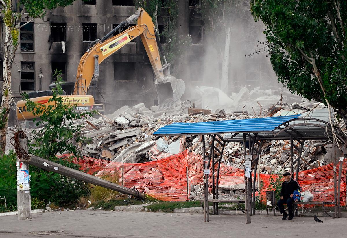 Виды Мариуполя. Жанровая фотография. Снос аварийных и частично разрушенных домов в Мариуполе.
