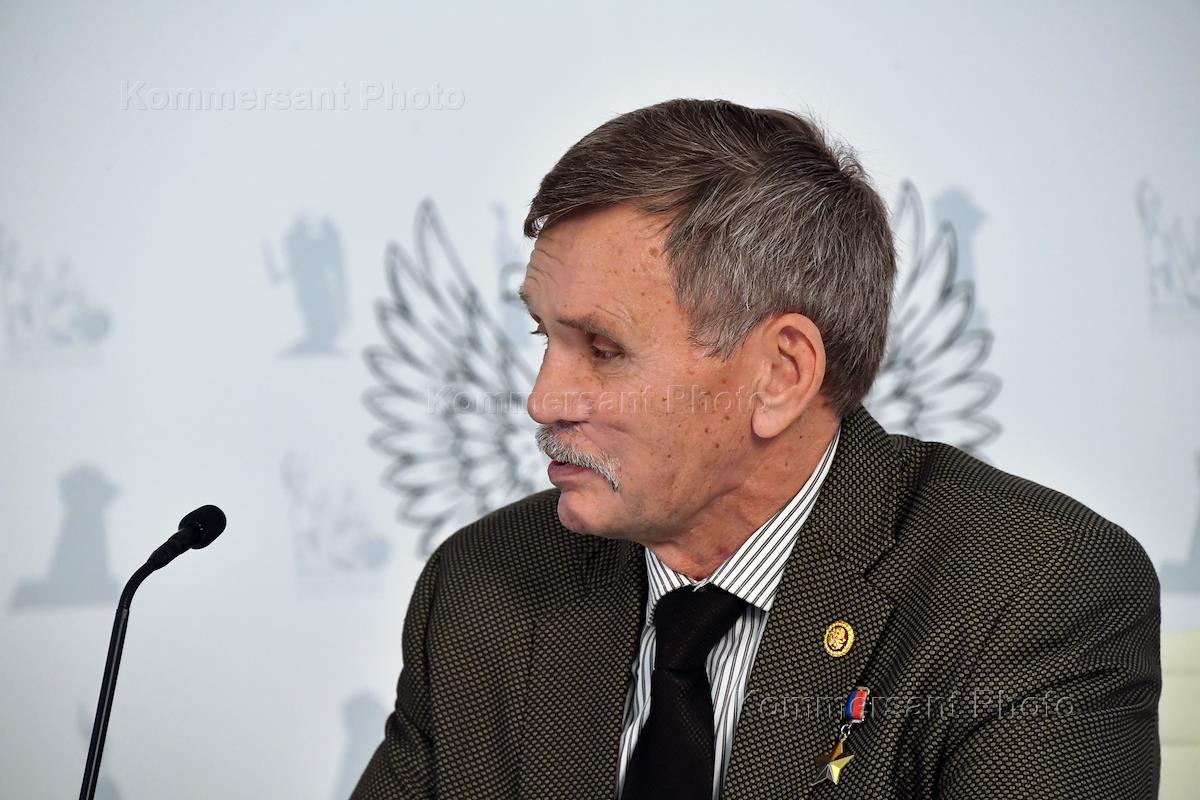Пресс-брифинг "Итоги работы общественного ситуационного центра Общественной палаты России (ОПР) по наблюдению за референдумами в ДНР, ЛНР, Запорожской и Херсонской областях" в ОПР. Председатель Совета по развитию гражданского общества и правам человека при президенте России Валерий Фадеев во время пресс-брифинга.