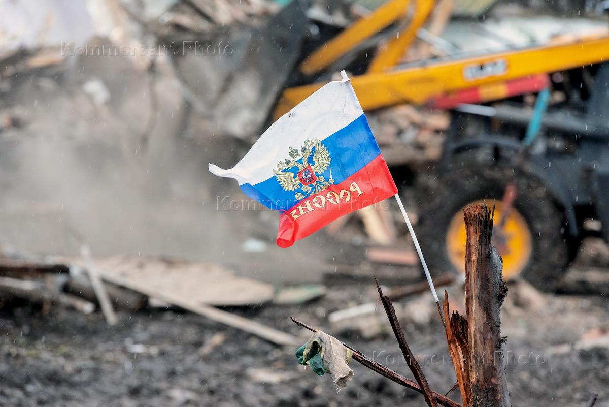 Последствия обстрела города Валуйки. Разрушенные дома на улице Школьная. Автомобиль со значком Z на фоне домов.