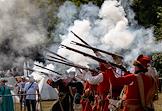Фестиваль "Русское поле" в музее-усадьбе "Коломенское". Участники реконструкции стреляют из мушкетов.