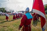 Фестиваль "Русское поле" в музее-усадьбе "Коломенское". Участники реконструкции - стрельцы стреляют из мушкетов в воздух.