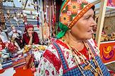 Фестиваль "Русское поле" в музее-усадьбе "Коломенское". Участница хорового коллектива в народном костюме на фоне торговых рядов на фестивале.