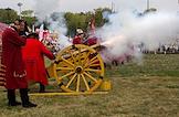 Фестиваль "Русское поле" в музее-усадьбе "Коломенское". Участники реконструкции стреляют из пушки во время боя.