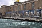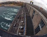 Пресс-тур "20 лет компании En+ Олега Дерипаски". Иркутская гидроэлектростанция (Иркутская ГЭС) на реке Ангаре в Свердловском округе города Иркутска. Жанровая фотография.
