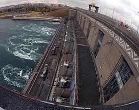 Пресс-тур "20 лет компании En+ Олега Дерипаски". Виды Иркутской гидроэлектростанции (Иркутская ГЭС) на реке Ангаре в Свердловском округе города Иркутска. Плотина.