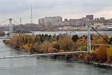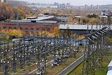 Пресс-тур "20 лет компании En+ Олега Дерипаски". Виды Иркутской гидроэлектростанции (Иркутская ГЭС) на реке Ангаре в Свердловском округе города Иркутска. Жанровая фотография. Линия электропередач гидроэлектростанции.