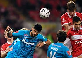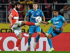 Fonbet - Russian Football Cup 2022/23. Match between the teams "Spartak" (Moscow) - "Zenit" (St. Petersburg) at the stadium "Otkritie Bank Arena". Zenit team player Zelimkhan Bakayev (second from left) during the match.