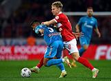 Fonbet - Russian Football Cup 2022/23. Match between the teams "Spartak" (Moscow) - "Zenit" (St. Petersburg) at the stadium "Otkritie Bank Arena". Zenit team player Douglas dos Santos (left) and Spartak team player Nail Umyarov (right) during the match.