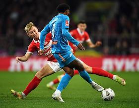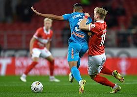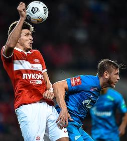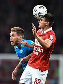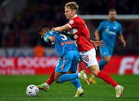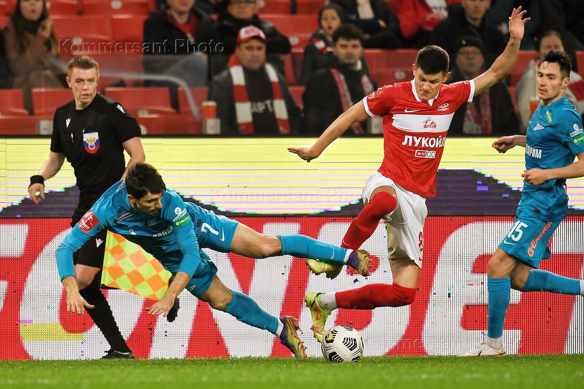 Fonbet - Russian Football Cup 2022/23. Match between the teams "Spartak" (Moscow) - "Zenit" (St. Petersburg) at the stadium "Otkritie Bank Arena". Spartak team player Alexander Sobolev (left) during the match.