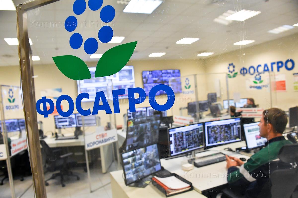 Фосфорный комплекса АО "Апатит" (Череповецкий химический кластер группы "ФосАгро"). Жанровая фотография. Сотрудник у мониторов видеонаблюдения.