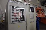 Пресс-тур "20 лет компании En+ Олега Дерипаски". Виды гидроэлектростанция "Братская ГЭС" (им. 50-летия Великого Октября) на реке Ангаре в городе Братске Иркутской области. Жанровая фотография. Производственные помещения гидроэлектростанции.
