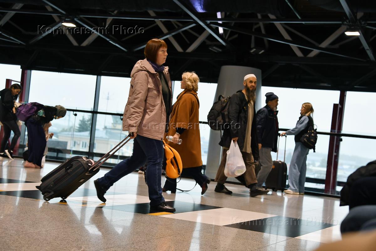 Жанровая фотография. Пассажиры в здании Международного аэропорта Шереметьево имени Александра Пушкина.