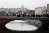 Митинг-концерт в поддержку вхождения ДНР, ЛНР, Херсонской и Запорожской областей в состав России на Красной площади. Участники с флагами России на мосту во время митинга-концерта.