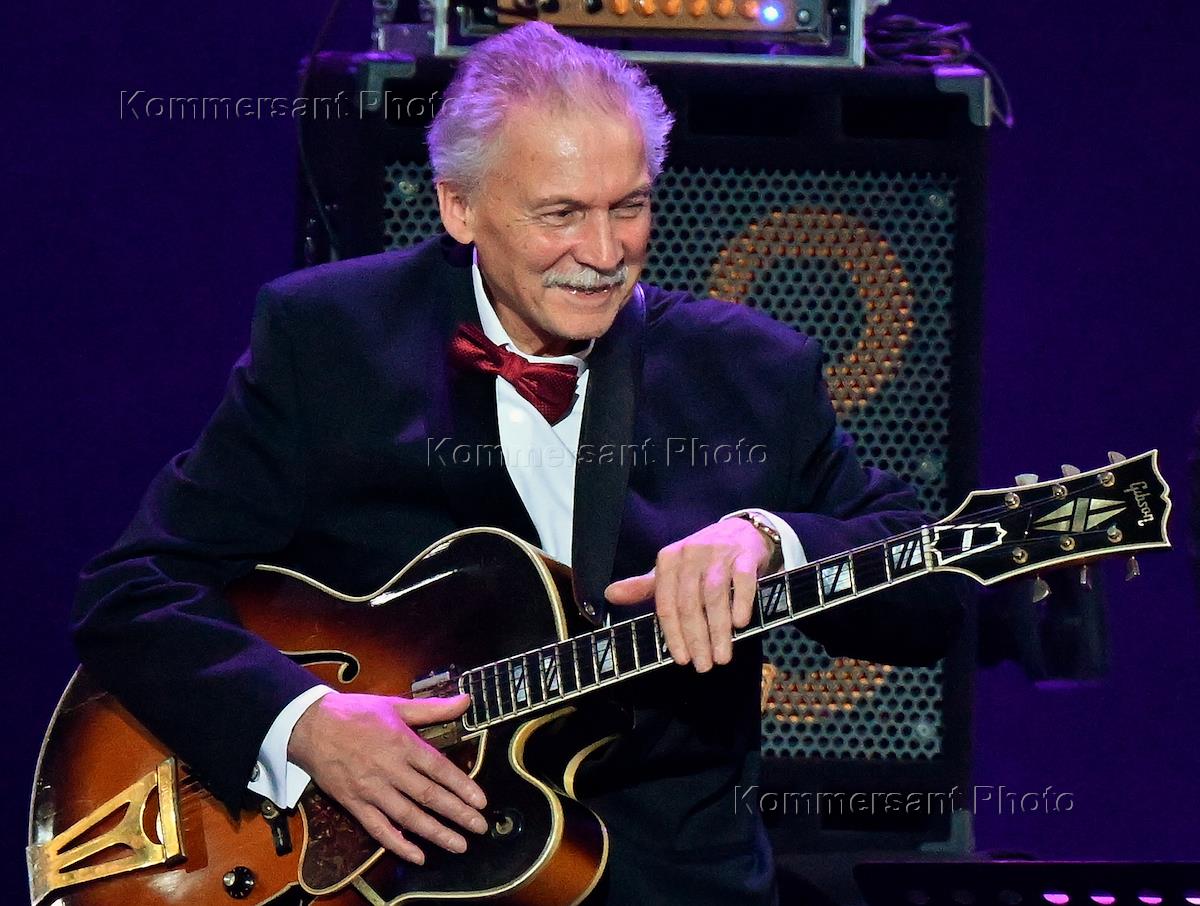 Гала-концерт, посвященный празднованию Столетия Российского джаза, на сцене Государственного академического Большого театра (ГАБТ). Гитарист Алексей Кузнецов во время концерта.
