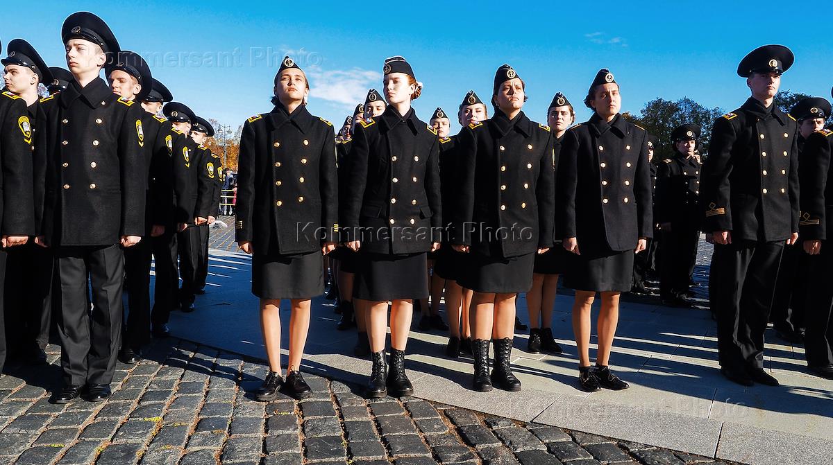 Initiation ceremony for first-year cadets of the Admiral Makarov State University of the Sea and River Fleet. Cadets at the ceremony.