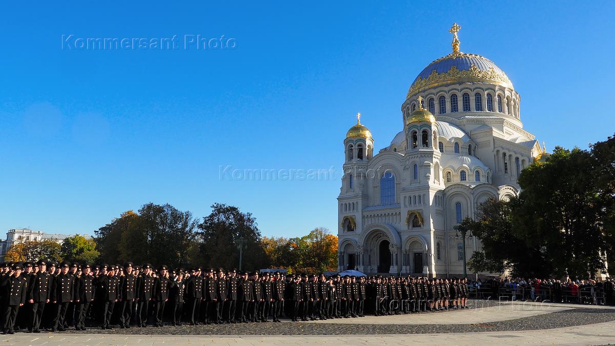 Initiation ceremony for first-year cadets of the Admiral Makarov State University of the Sea and River Fleet. Participants of the ceremony during a prayer service at the St. Nicholas Naval Cathedral.