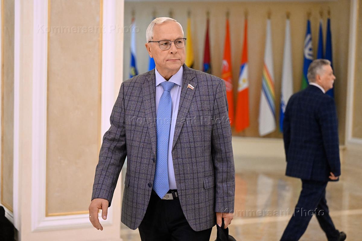 Parliamentary hearings on the topic: "On the parameters of the draft federal budget for 2023 and for the planning period of 2024 and 2025" in the Federation Council of Russia. Chairman of the Moscow City Duma Alexander Shaposhnikov before the start of the hearings.