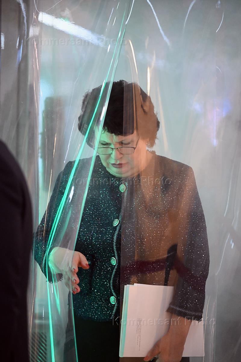 Parliamentary hearings on the topic: "On the parameters of the draft federal budget for 2023 and for the planning period of 2024 and 2025" in the Federation Council of Russia. Yelena Mizulina (center), representative in the Federation Council of Russia from the executive power of the Omsk region, before the start of the hearings.