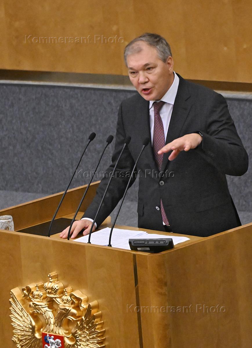 Extraordinary plenary session of the State Duma of Russia. Member of the Russian State Duma Committee on Ecology, Natural Resources and Environmental Protection Timofey Bazhenov (right) during the meeting.