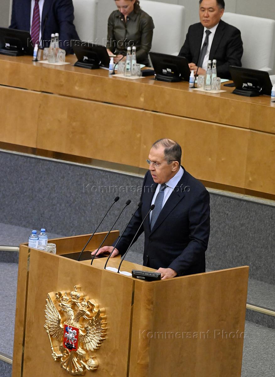 Extraordinary plenary meeting of the State Duma of Russia. Russian Foreign Minister Sergei Lavrov speaking at the meeting.