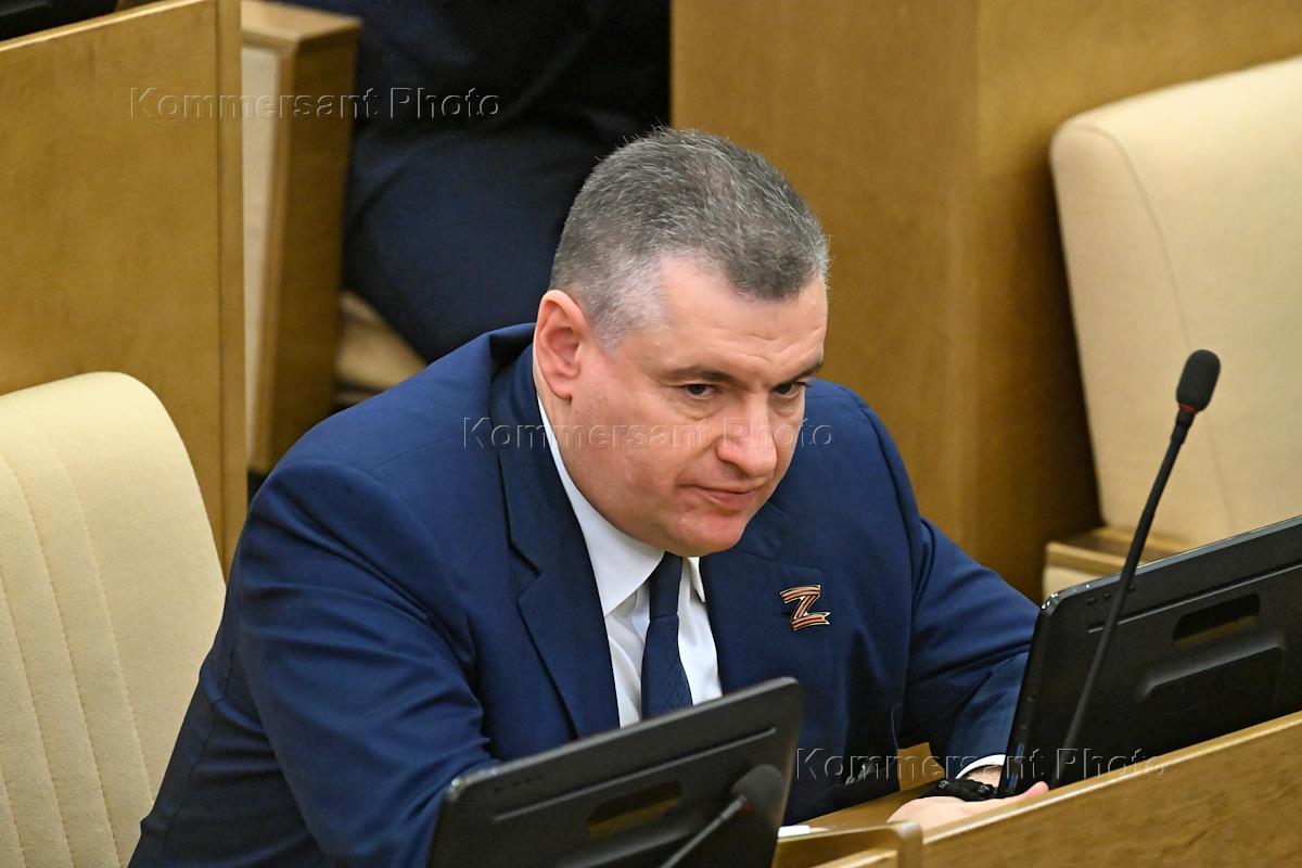 Внеочередное пленарное заседание Государственной думы (ГД) России. Лидер партии Либерально-демократическая партия России (ЛДПР) Леонид Слуцкий во время заседания.