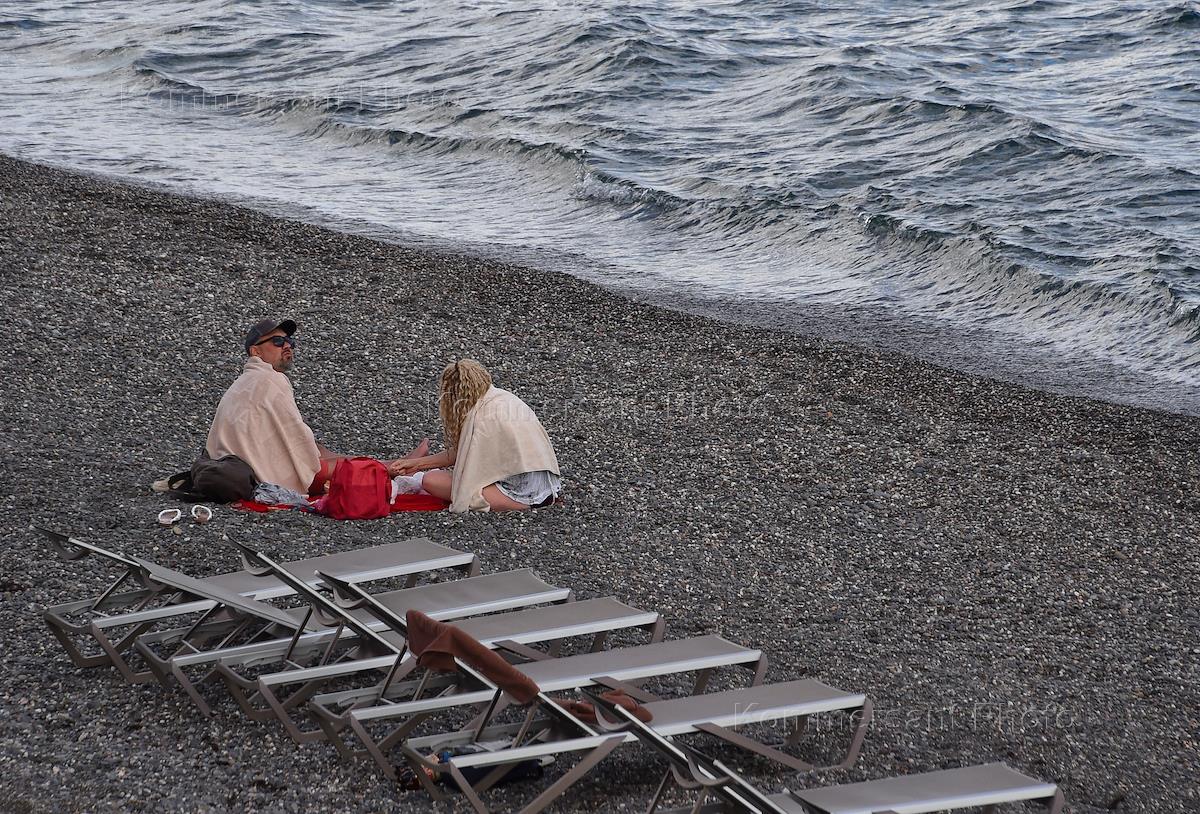 Velvet season in Crimea. Views of Alushta. Fishermen with fishing rods on the beach.